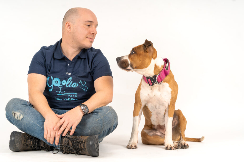 Om cu caine cu probleme de comportament – client Yoolia’s Pack – un mix de fire autodidacta si dorinta de a atinge telul propus (reabilitarea cainelui) – studiat, aplicat, esuat, luat de la capat, reusit – actual dog behaviourist la incept de drum.